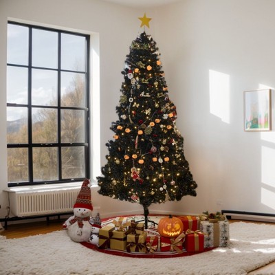 GOTGELIF Pre-Lit Stunning Holiday Tree Black 7.5Ft Christmas Tree with Twinkling Lights Xmas Decoration