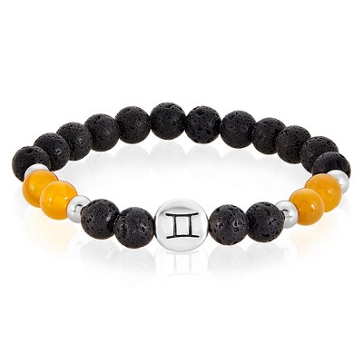 Men's Zodiac Lava and Agate Stone Bead Stretch Bracelet - West Coast Jewelry