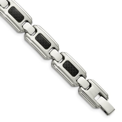 Black Bow Jewelry Men's 13mm Stainless Steel & Black Carbon Fiber Link Bracelet, 9 Inch
