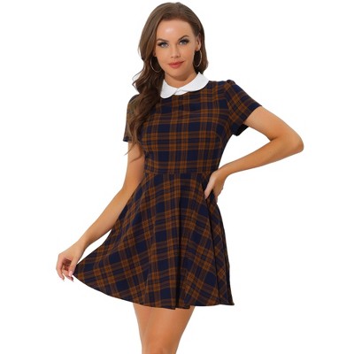 Allegra K Women's Contrast Peter Pan Collar Floral Long Sleeve Mini Dress