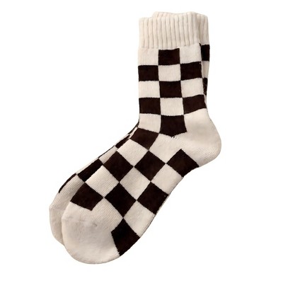 Anna-Kaci Women's 3-Pair Checkerboard Crew Socks Soft Knit Fabric Ribbed Cuff Comfortable Everyday Giftable Sock Set - Beige+Brown
