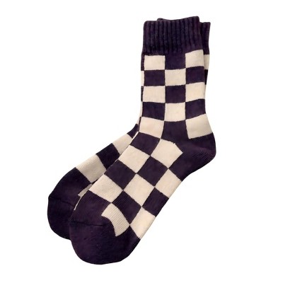 Anna-Kaci Women's 3-Pair Checkerboard Crew Socks Soft Knit Fabric Ribbed Cuff Comfortable Everyday Giftable Sock Set - Purple+White