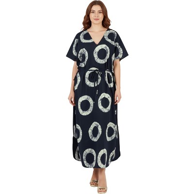 LEELA Womens Summer Maxi Nightdress Cover Up Gown Caftan Loungewear Dashiki House Dresses for Women 3X-4X Blue, Polka Dots