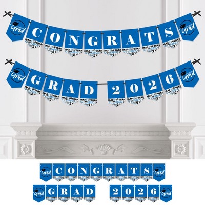Big Dot of Happiness Blue Graduation Bunting Banner - Party Decorations - Congrats Grad 2026