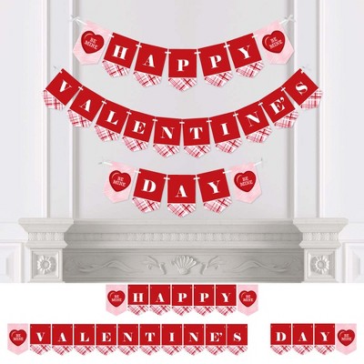Big Dot of Happiness Conversation Hearts - Valentine's Day Party Bunting Banner - Red Party Decorations - Happy Valentine's Day