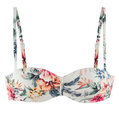 Women's Tropical Print Bandeau Bikini Swimsuit Top Bra Sizing - LASCANA