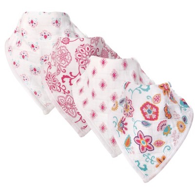 Hudson Baby Infant Girl Muslin Cotton Bandana Bibs 4pk, Floral, One Size