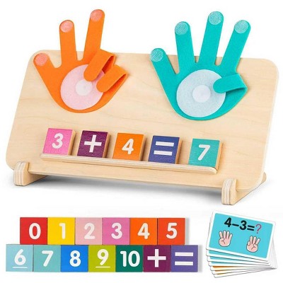 Etokfoks Preschool Math Manipulatives Set 1 Wooden Finger Board 13 Number Blocks 10 Flash Cards Holder Montessori Toys for Kids 3 5