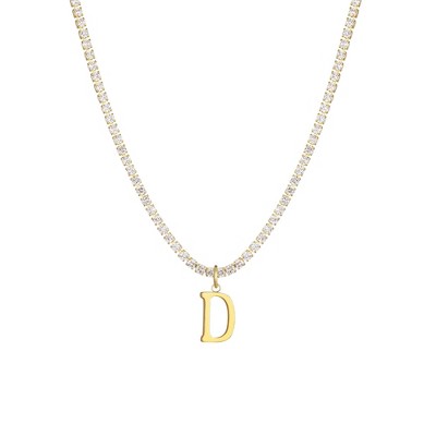 Adornia 14k Gold Plated Adjustable Paperclip Lariat with Crystal Initial Medallion
