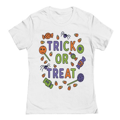 Rerun Island Women Trick Or Treat Colors Short Sleeve Graphic Cotton T-Shirt