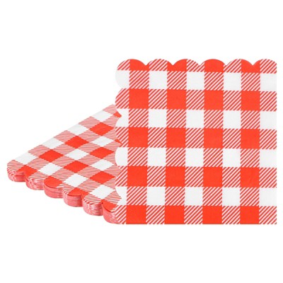 Unique Bargains Paper 2-ply Gingham Scalloped Disposable Napkin