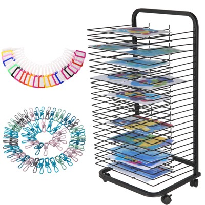 16/25 Shelfs Mobile Art Drying Rack for Classrooms & Art Studios, Canvas/ Paint Drying Rack, Wall Mountable Art Storage Rack with Wheels, Black/Blue