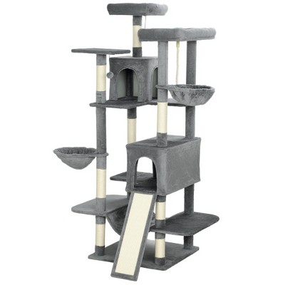 ChicFurnit Pet Tower - Spacious Multi-Tier Cat Activity Center with Large Condos, Dual Hammocks and Sisal Scratching Ladder, Gray, 23.6"*23.6"*78.8"