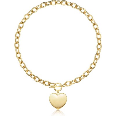 Bella Silver Sterling Silver Triple Heart CZ Bar Necklace - Gold Plated - Gold - 16+2 Inch