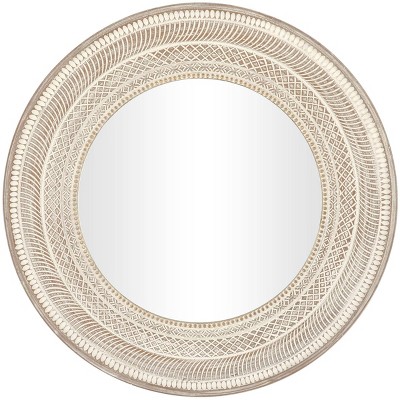 Olivia & May Wooden Oval Room Wall Mirror with Dimensional Carved Frame White The Novogratz