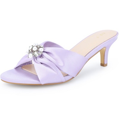 BLISSFUL STEP Rhinestone Pearl Kitten Heels Slip on Slide Sandals for Women