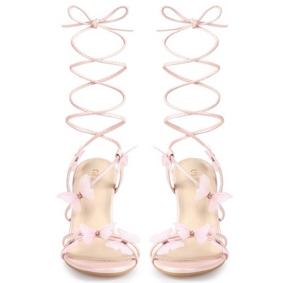 Allegra K Women's Rhinestone Ankle Strap Stiletto Heeled Sandals