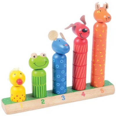 Constructive Playthings Animal Stack & Count Wooden Toy – 16-Piece Stacking & Sorting Learning Set for Ages 2+