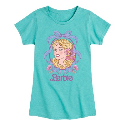 Girls' - Barbie - Portrait Floral Bow Fitted Short Sleeve Graphic T-Shirt