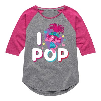 Girls' - Trolls - I Love Pop Poppy Shirt Tail Raglan Graphic T-shirt