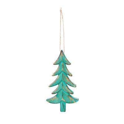 Gallerie II Wooden Green Wash Carved Tree Christmas Ornament