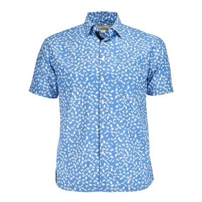 Burnside Men's Tropical Hawaiian Print Shirt | Blue Palm Leaf