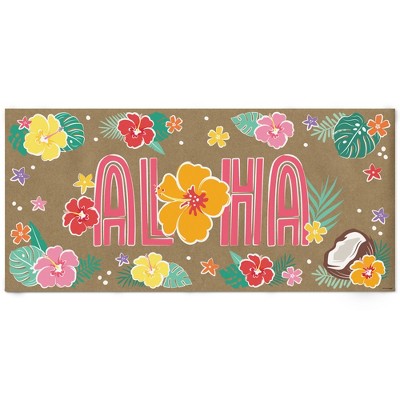 Big Dot of Happiness Hawaiian Luau Aloha Kraft Paper Banner, Hibiscus Flowers Tropical Party Banner, Printed Brown Paper Party Sign Decoration – 1 Ct