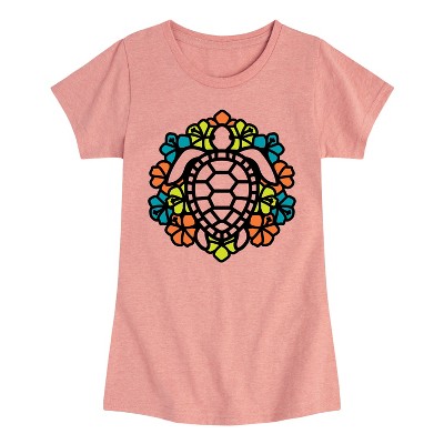 Girls' - Instant Message - Tropical Flowers and Turtle Fitted Short Sleeve Graphic T-Shirt