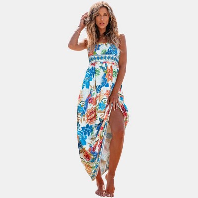 Cupshe Women's Boho Chic Floral Print Maxi Dress with Smocked Bodice