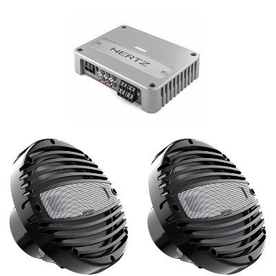 Hertz 2 Pairs HMX 6.5-TC 6 1/2" Black Sport Grill Coaxial Marine Speakers with Venezia V4C 4-Channel Compact Marine Amplifier