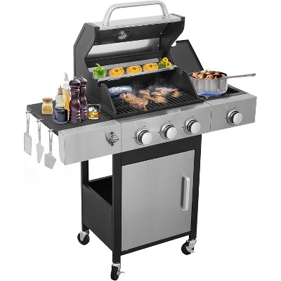 ZAFRO Food Grade Stainless Steel 3-Burner Propane Gas Grill, 24000BTU , Foldable Side Table, Barbecue Grill for Outdoor Cooking, Backyard, Patio
