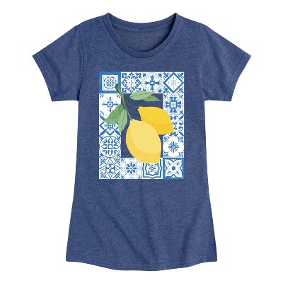 Girls' - Instant Message - Mediterranean Tiles With Lemons Fitted Short Sleeve Graphic T-Shirt