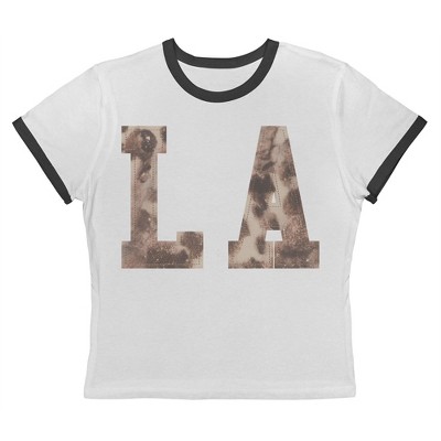 Rerun Island Women's La Letters Texture Short Sleeve Graphic Cotton Retro Vintage Ranger Baby Tee - White Caviar M
