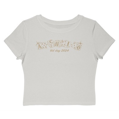 Rerun Island Women's Alpha Chi Omega Bid Day Short Sleeve Graphic Cotton Baby Tee - Cloud Dancer L
