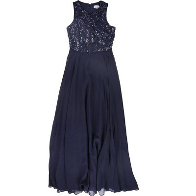 B. DARLIN Womens Sequined Bungee Strap Evening Gown Dress