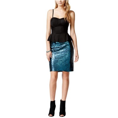 Material Girl Womens Sequined Peplum Bodycon Dress