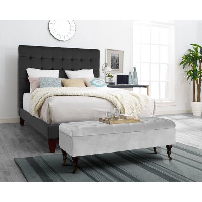 - gray tufted bench