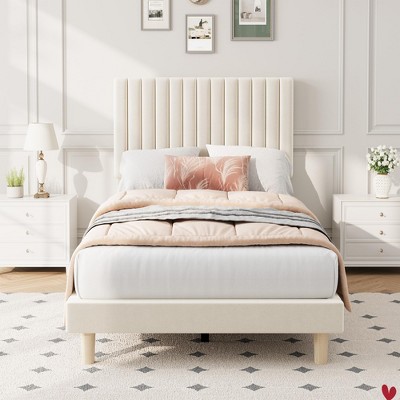 - beige tufted bed