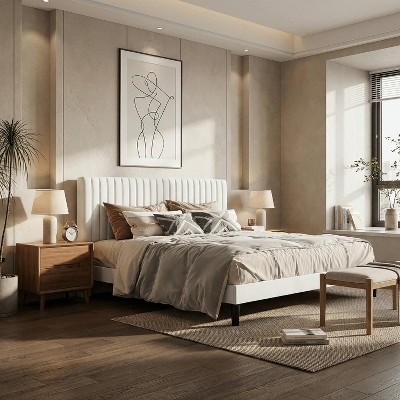 - beige upholstered bed