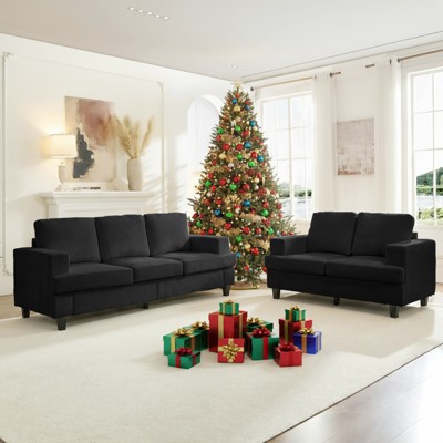 - black tufted sofa