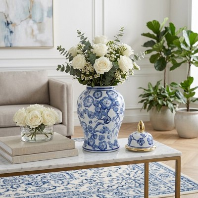 Classic Tall Ceramic Jar with Lid for Table Display - Decorative Accent Piece Jars as Elegant and Traditional Home Decor Styling - Blue, 14.5"