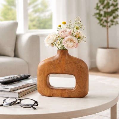 Ring Accent Rustic Terracotta Pottery Flower Vase for Home Decor - Tall Vase Accent for Table Display, Shelves and Centerpieces