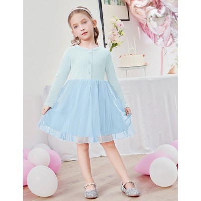Arshiner Toddler Girls Tutu Dress Long Sleeve Fall Winter Button Front Party Tulle Dresses 2-8Y