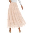 LEVEN SIXTEEN Tulle Skirts for Women 2025 Fall Fashion Elastic High Waisted Fairy Tiered Flowy A-Line Casual Maxi Long Skirt Beige