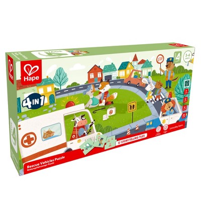 Hape: Rescue Vehicles Puzzle - 4 Puzzles In 1,Ages 3+