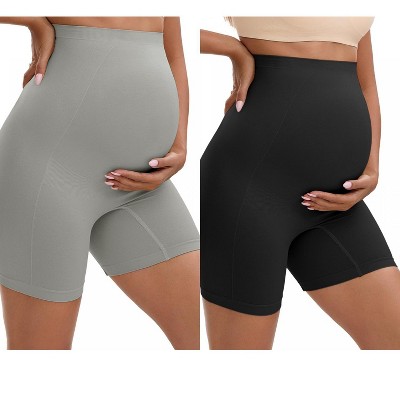 INSPIRE CHIC Women's Maternity High Waist Thigh Slimmers for Under Dresses Comfort Soft Pregnancy Shapewear 2 Packs