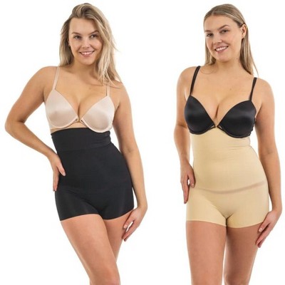 Body Beautiful Shapewear 2-Pack Seamless Hi Waist Bottom Shaper for Women Stomach & Waist Control, X-large, Black & Nude