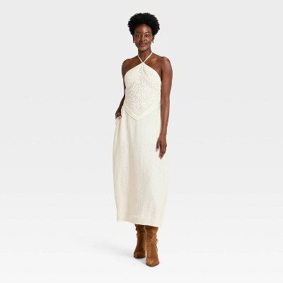 Women's Embroidered Skater Dress - A New Day™ Cream