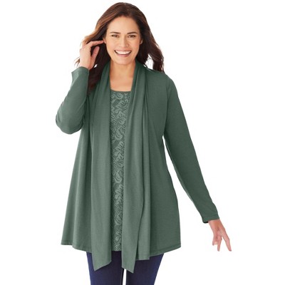 Woman Within 2-Fer Cardigan & Attached Lace Tunic