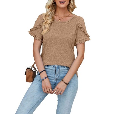 Coolmee Womens Summer Tops Petal Ruffle Sleeve Flowy Shirts Casual Work Loose Fit Tunic Blouses